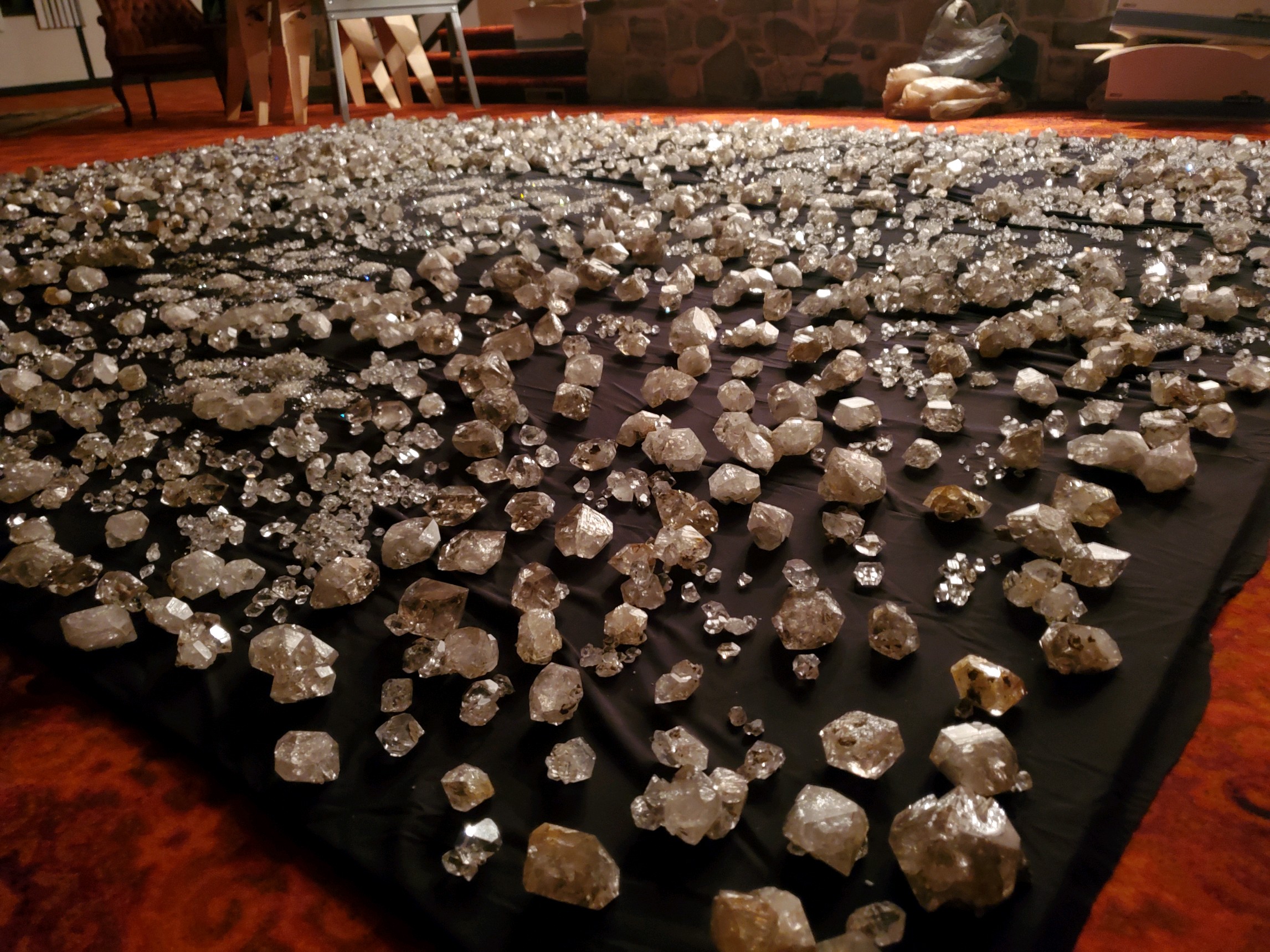This 12 foot x 16 foot masterpiece is named 'Herkimer Stardust'. Herkimer Stardust contains 1,500,000 carats of culled Herkimer Diamond crystals and clusters that can no longer be had, as that part of the ancient seabed is gone forever.