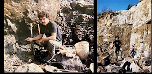 The tools; 3lb.crack hammer, 6lb.crack hammer, 8, 10 12, 16, and occasionally 20lb. sledge hammer. Different widths and thickness sharpened car and truck springs. 7/8 inch cold steel chisel, (especially used to make slots in the rock where joining planes or cracks don't exist). The Zulu war stick, an invention to reach deep into the wall; produced 'thunderbolt' my favorite crystal.